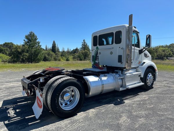 This 2014 Peterbilt 579 Day Cab is a California full maintenance lease return. This single axle day cab features a fuel efficient MX-13 engine and automated transmission. Give our sales team a call for more information or come in for a test drive. This unit is sold as is.