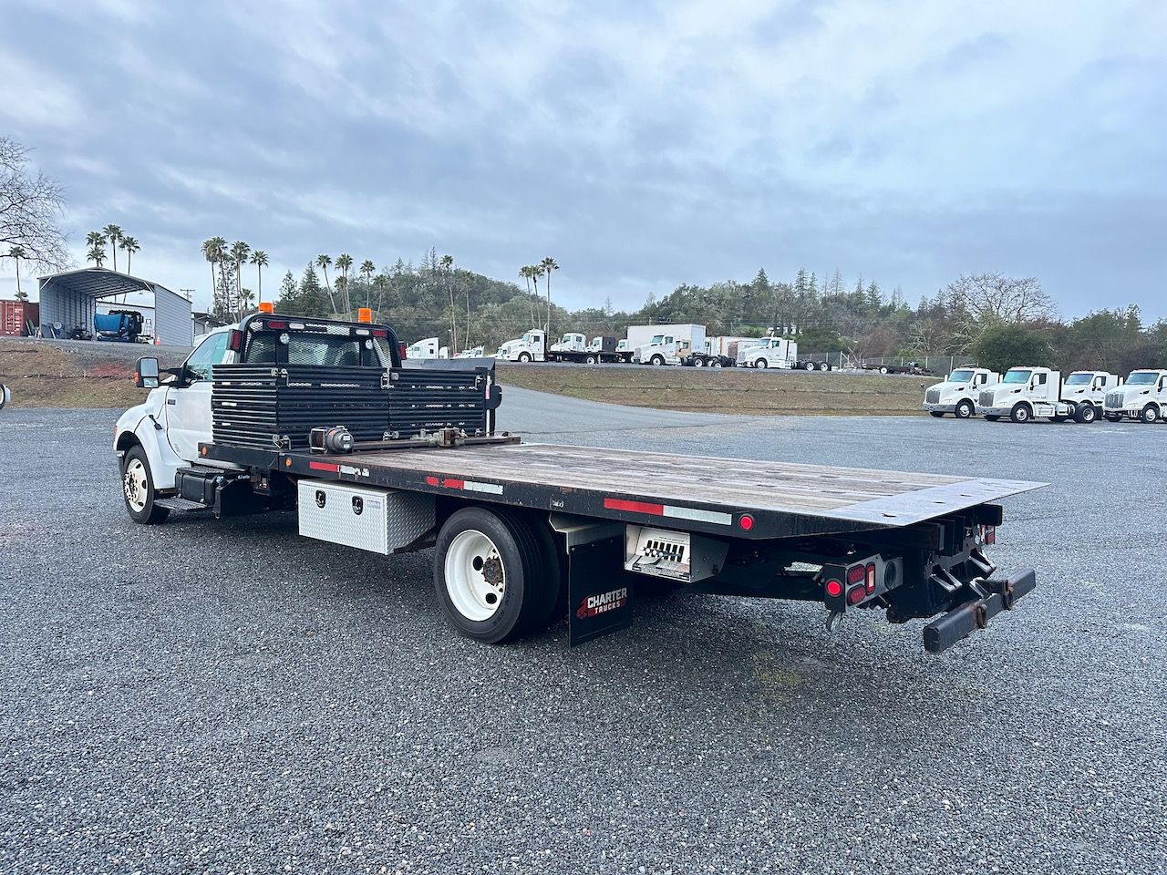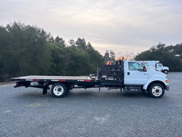 This 2015 Ford F650 Rollback truck is a former rental ready for its next job. This truck features Cummins power, an Allison automatic transmission, and Air Ride suspension. Give our sales team a call for more information or a full walk-around of vocational truck.