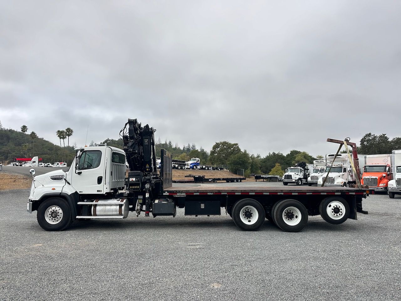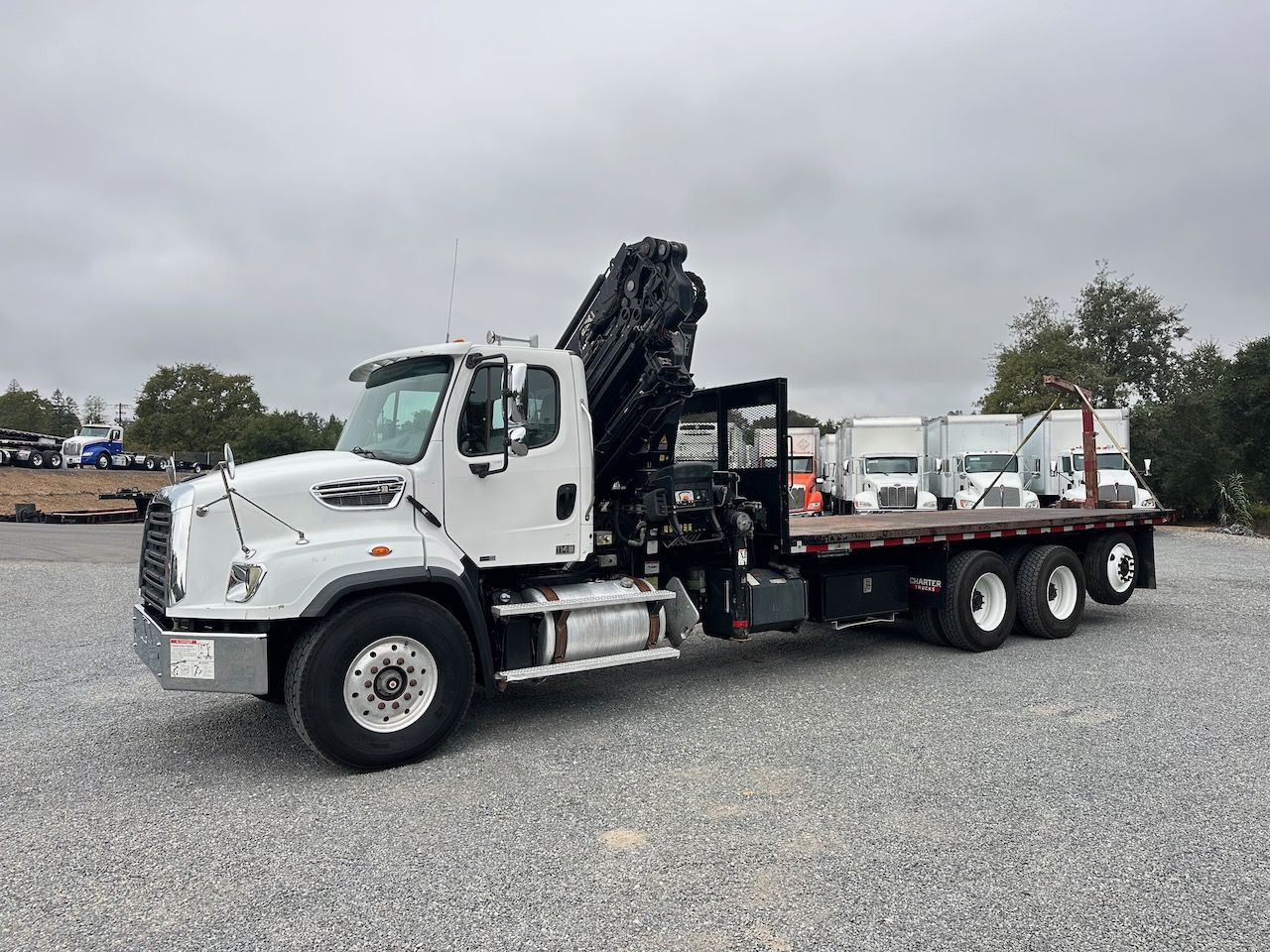 This 2015 Freightliner 114SD Knuckle Boom truck previously hauled building supplies. This truck features a double frame, full lockers, and low miles and hours for the year. Give our sales team a call for more information or a full walk-around of this unit.
