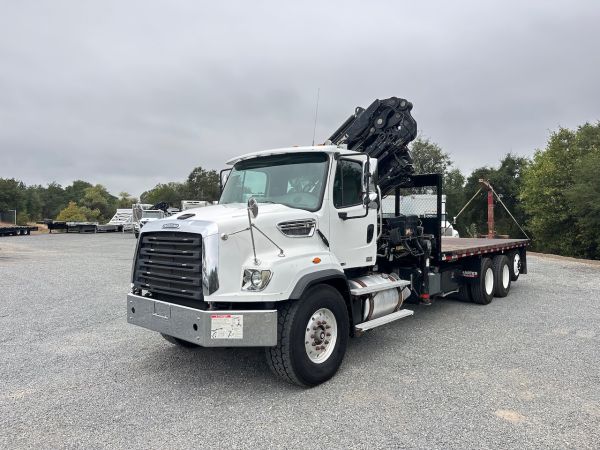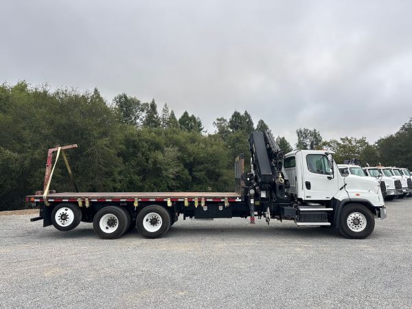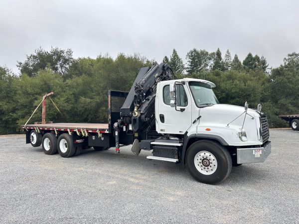 This 2015 Freightliner 114SD Knuckle Boom truck previously hauled building supplies. This truck features a double frame, full lockers, and low miles and hours for the year. Give our sales team a call for more information or a full walk-around of this unit.