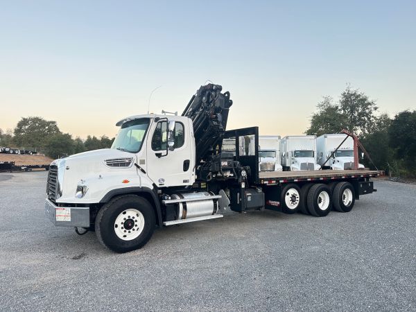 This 2015 Freightliner 114SD Knuckle Boom Truck formerly hauled building materials. This truck is double framed, has full lockers, and only 155,000 miles. Give our sales team a call for more information or a full walk-around of this unit.