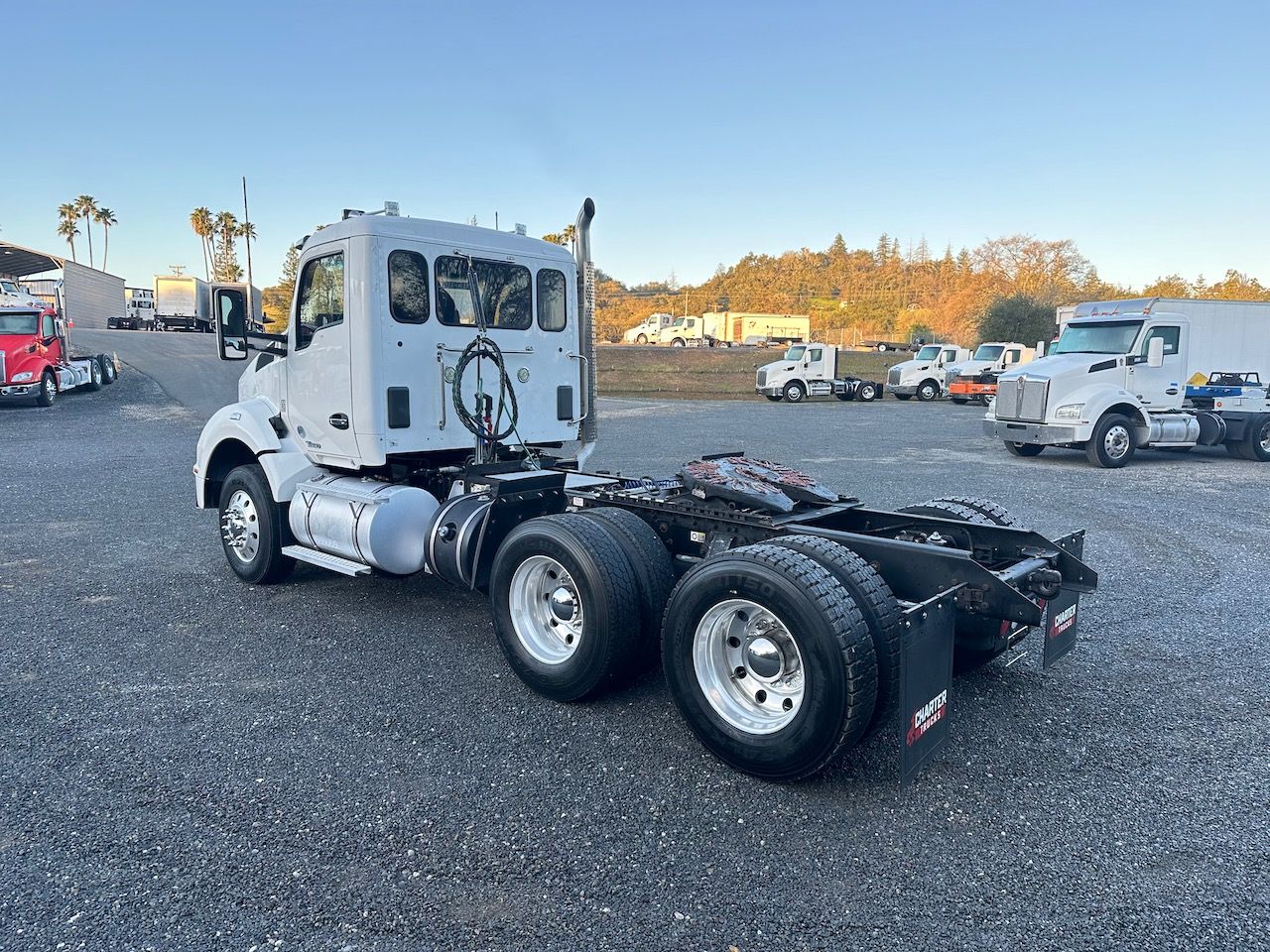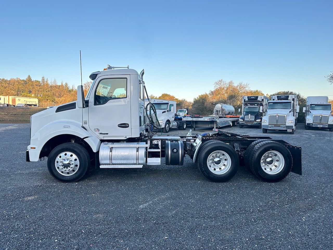 This 2016 Kenworth T880 Day Cab is a California lease return with low miles for the year. This truck features a 10-speed manual transmission and a short wheelbase. Give our sales team a call for more information or a full walk-around of this unit.