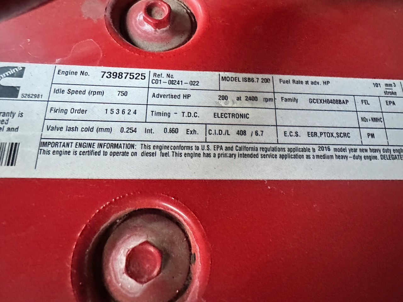 Engine Type | ISB 6.7 |