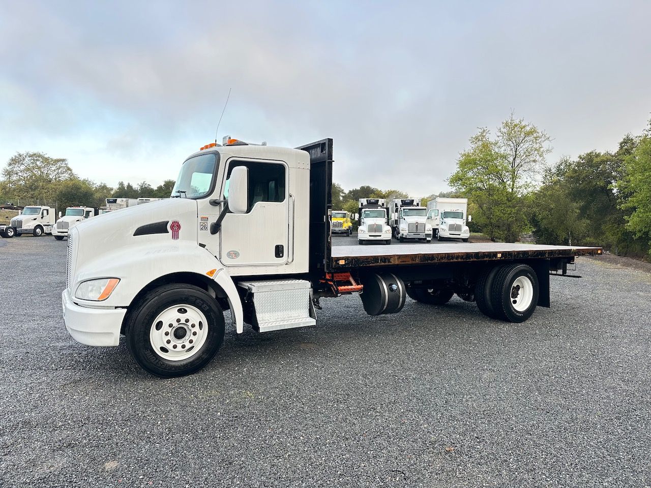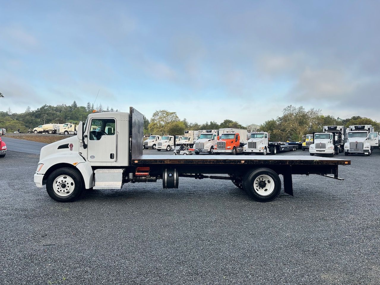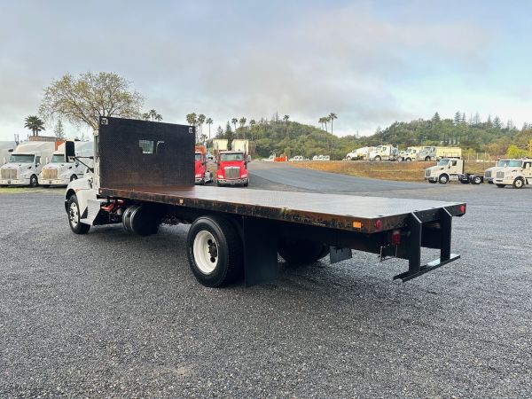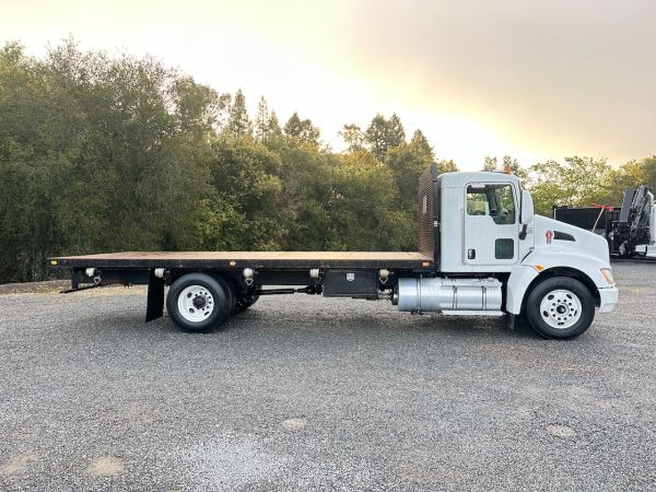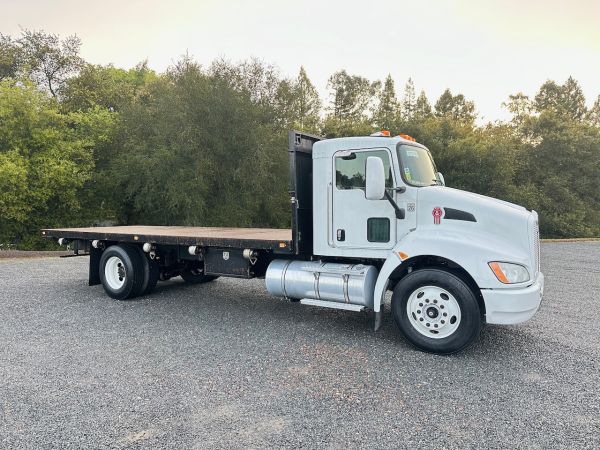 This 2018 Kenworth T270 Flatbed Truck is a California lease return in good shape. This truck features an Allison transmission and no CDL is required to drive it. Give our sales team a call for more information or come in for a test drive.