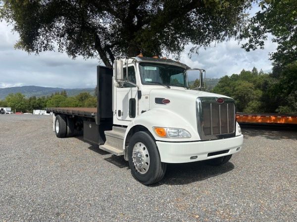 This 2018 Peterbilt 337 Flatbed Truck is a California lease return in great shape. This truck features an Allison automatic transmission and super low miles. Give our sales team a call for more information or a full walk-around. This unit is sold as is.